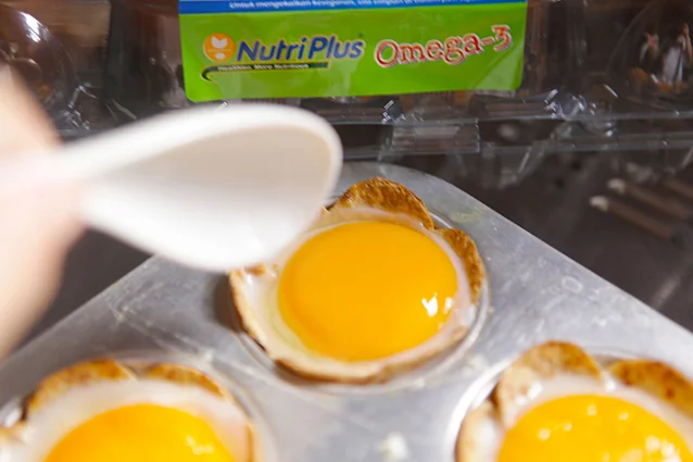 Arrange chia seeds at the centre of egg yolk for ganish purpose.