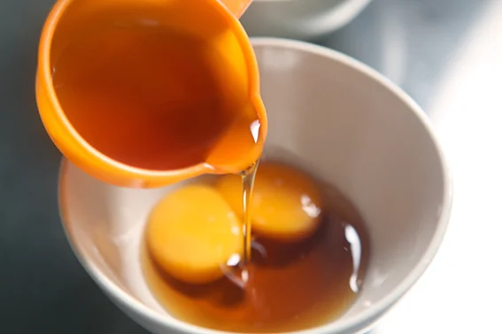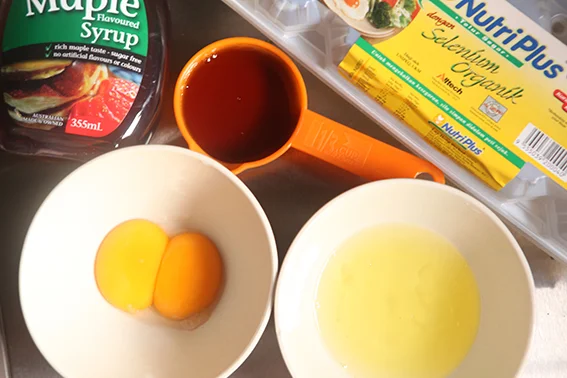 Whisk yolks and maple syrup until evenly combined;