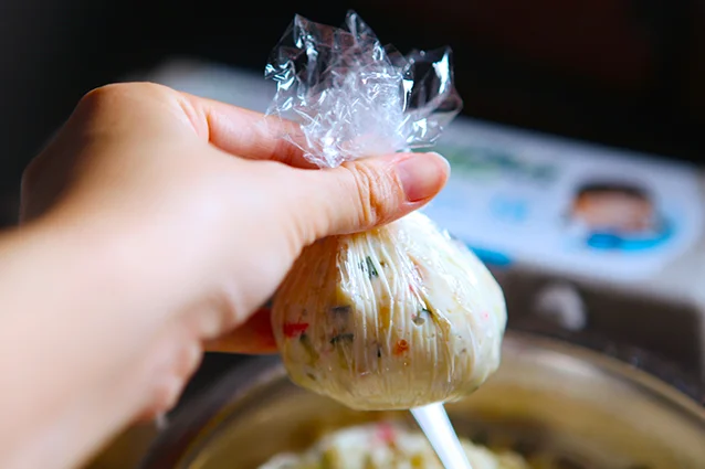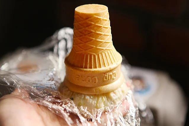 Scoop mashed potato mixture (or use cling flim to shape the mashed potato) and put onto ice-cream cone;